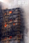 资料图片:2010年11月15日,上海余姚路胶州路高层住宅脚手架起火。 事故过去已近1年,连日来,部分受灾者表示,事故发生后社会各界共捐款4480万元,如今只有约420万元发放到受灾者手中。另