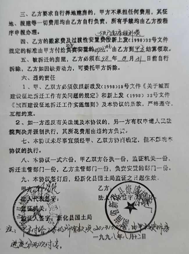 新化县政府时任常务副县长李铁雄,政法委书记刘岚平参加,协商结论认为:属落实政策而非法侵权问题,并承诺由新化县政府牵头处理安置到位。
