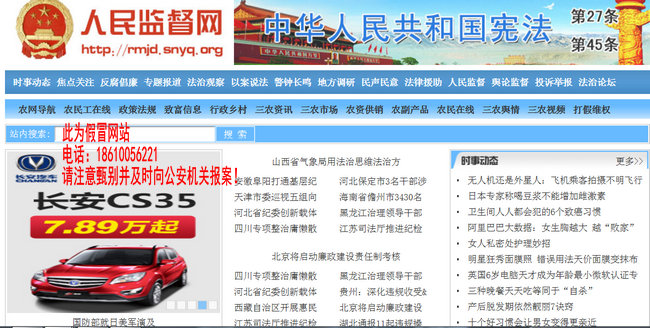 日前,接到网民民投诉,有人制作假冒的人民监督网,冒充人民监督网工作人员,骗取钱财。