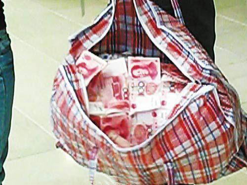 · 看她拿着蛇皮袋的样子就知道袋子里没有多少现炒的,要是整捆的现钞她根本就拿不动啊,这个袋子至少可以装下200万元整捆的现钞,只不过是个病态的女子罢了