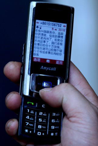 而此前,王明亮与众多患儿家长一起在太原,向山西省相关部门申诉。3月21日13时19分53秒王明亮接到来自15156752184手机的短信:“不要猜测我是谁,我们老板叫我联系你,是跟你讲清楚,役苗的事情你不要再闹了,如果你不闹这事了,我们老板会事后给你十万块钱,你现在就可以给我个银行卡号或者事后再给你联系。”