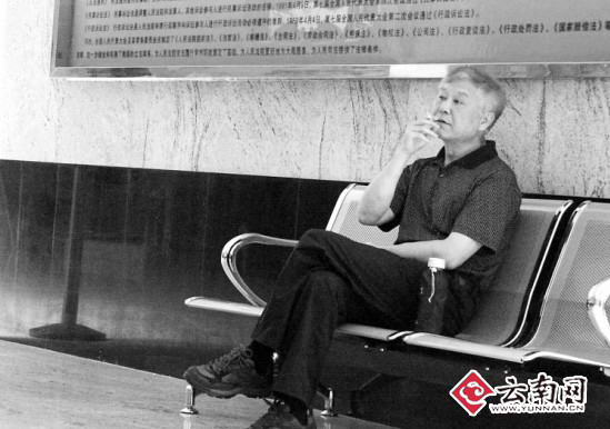 肖晓鹏庭外抽烟等待开庭。
