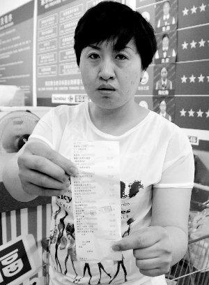 图为潘春莹展示能证明她受到欺诈的购物小票。