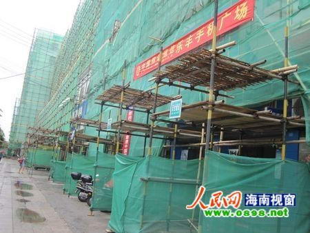 7月14日,记者在东方市九龙大道、东方大道、东海路等多条街道看到,街道两边的大多数建筑穿起了由钢管和防护网构成的“绿衣”,但却几乎没有看到施工人员。在九龙大道经营一家餐馆的符老板告诉记者,施工人员搭建完脚手架之后并没有立即施工,而是继续搭建其他街道的脚手架了,据说要等搭建完毕后一起施工,“八所现在就像一个大工地”。
