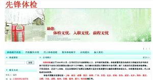 “先锋体检”网站上宣称,体检代理服务范围包括:北京、上海、南京、成都、重庆、深圳、广州等城市。
