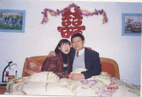 证据6:重婚的女人陈x与董锋生有一个女儿,床头挂着结婚喜字,合影照一