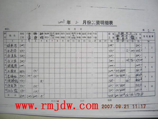 2006的11月27日,原告到淳安县人民法院要求复制被告提供的工资表,复制以后,才发现被告两次提供的工资表都是伪造的。从中发现,被告共剥削原告合法报酬8000多元。
