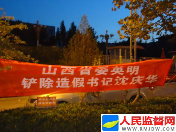 图:档案造假纪委书记沈庆华被免职,当地百姓在临汾市委门口挂条幅庆贺