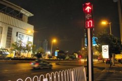 解放路与曲阜路交口的LED交通信号灯。这是武长顺在2012年发明的信号灯。制造单位为天津市正直智能交通设施制作安装有限公司。